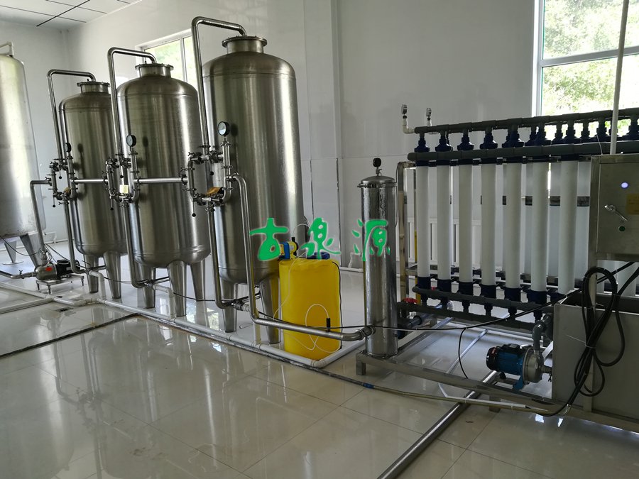 該項目地址位于遼寧省昌圖縣,地區(qū)地下水水質(zhì)相對較好,故此采用超濾工藝對原水進行凈化。將原水水中的有益離子成分進行保留,除去水中99.99%的可溶性固體、細(xì)菌、膠體等一系列對人體有害的物質(zhì),最末端采用臭氧進行消毒,保證全部無菌化出廠。