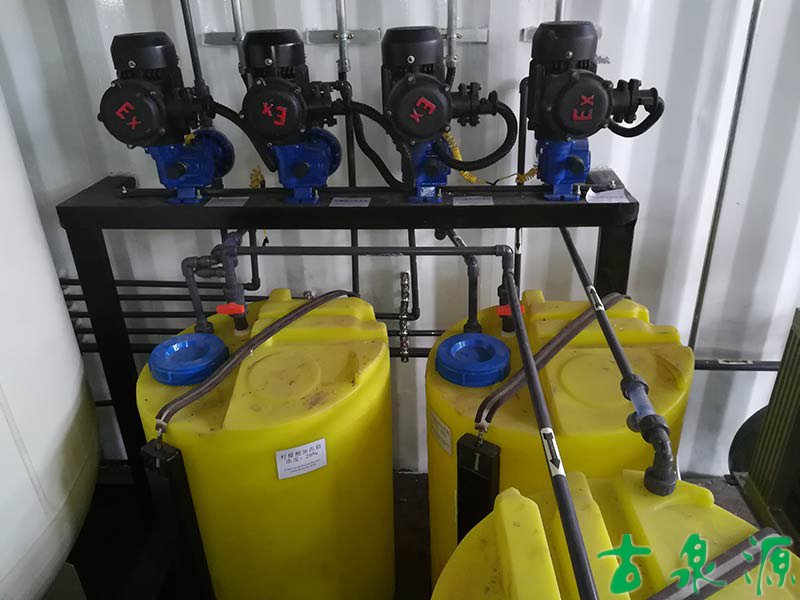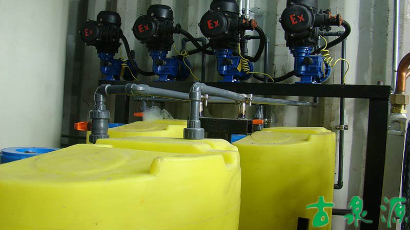 加藥系統(tǒng)(dosing system)主要由溶液箱、攪拌箱(帶攪拌器)、計量泵、液位計、電控柜、管路、閥門、安全閥、止回閥、壓力表、過濾器、底座、扶梯等組成(可根據(jù)用戶實際要求配置)。加藥系統(tǒng)根據(jù)所需藥劑濃度,在攪拌箱內(nèi)配制,經(jīng)攪拌器攪拌均勻后投入溶液箱、用計量泵(加藥泵)向投藥點或指定的系統(tǒng)中輸送所配制的溶液。